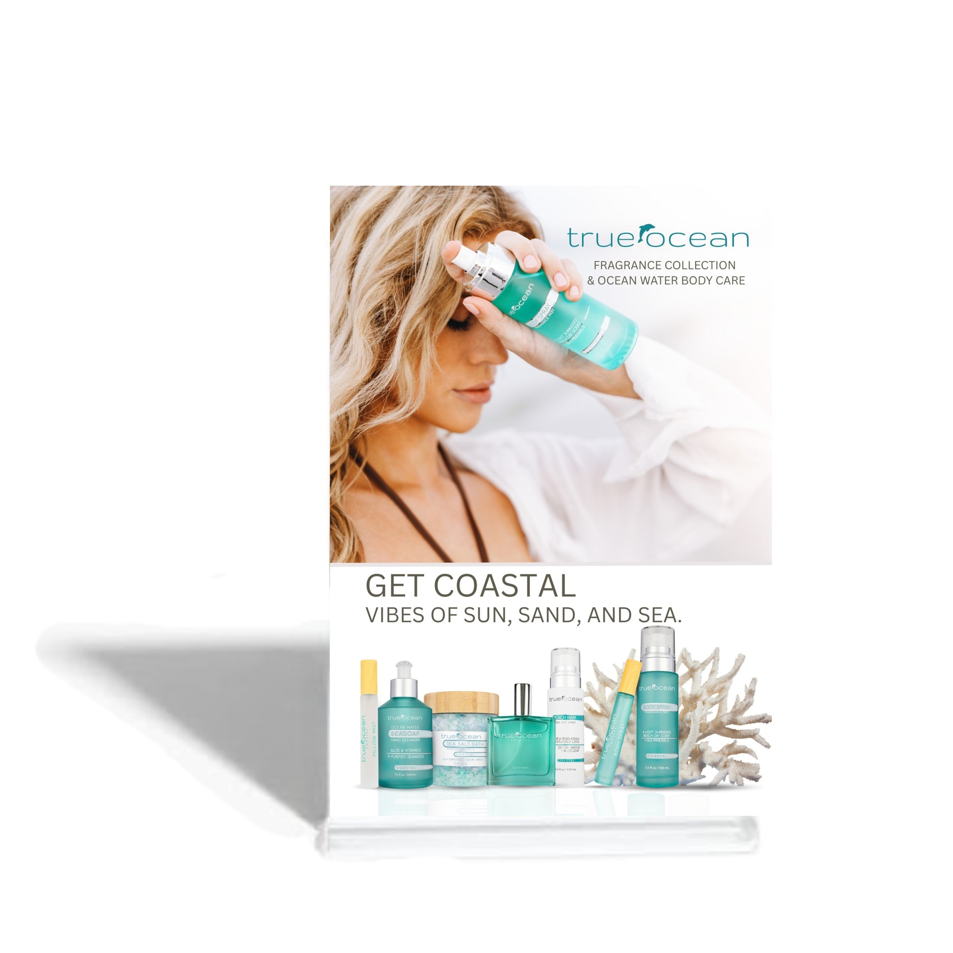 A small, professionally printed tabletop sign designed for in-store display. Perfect for placing next to your True Ocean display, helps introduce customers to the brand. Each sign comes with a clear acrylic stand – simply tuck the tile into the stand's slot and…that’s it!