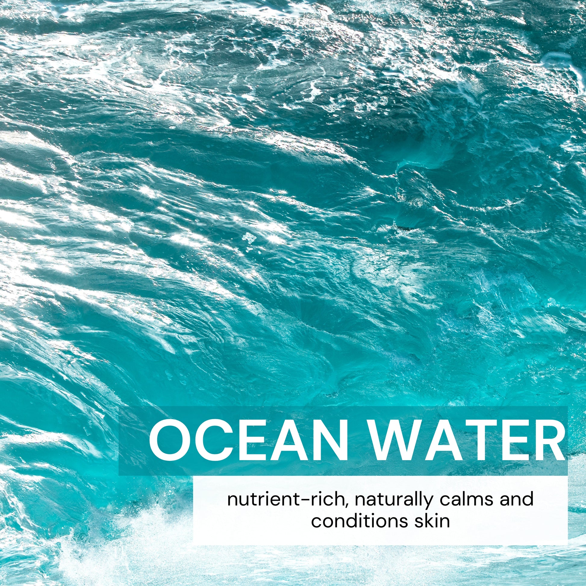 Deionized water, ocean water, rosa damascena flower oil, organic aloe barbadensis (aloe vera) leaf extract, glycerin, sodium PCA, cetrimonium Chloride, Panthenol (pro-vitamin B5), organic calendula officinalis (marigold) flower extract, organic chamomilla recutita flower extract, symphytum officinale root extract, cucumis sativus (Cucumber) fruit extract, ascorbic acid (vitamin C), dead sea salts, dimethicone copolyol, phenoxyethanol, ethylhexylglycerin, caprylyl glycol, hexylene glycol